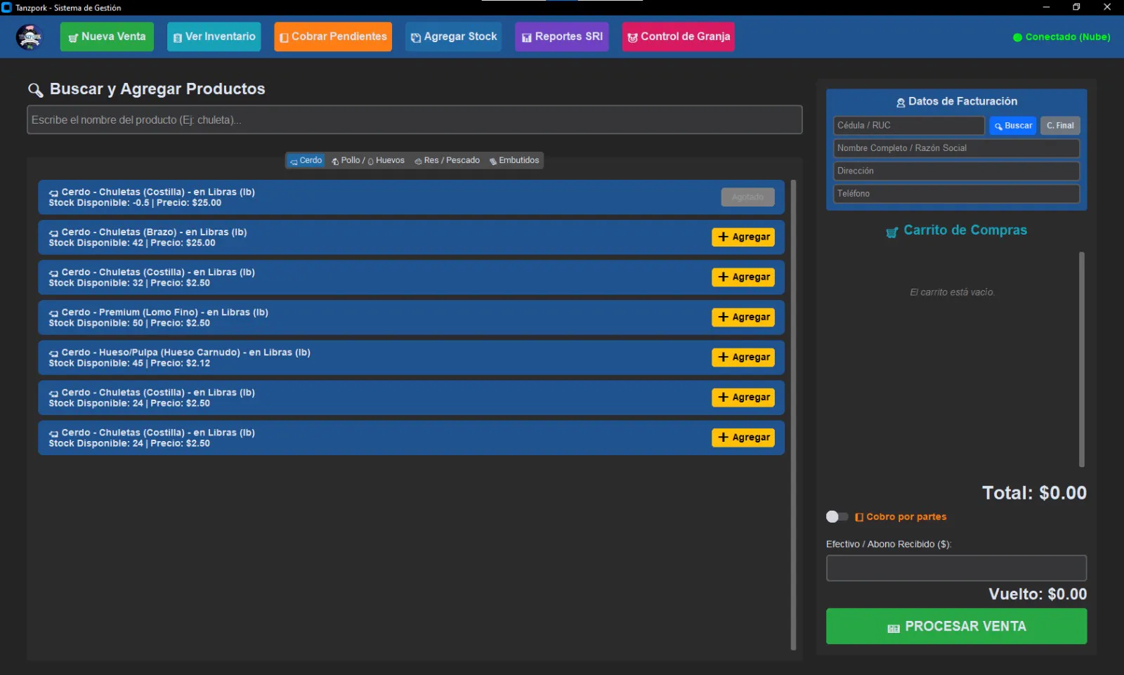Ver Galería 3D Punto de venta integral con base de datos en la nube y sincronización automática entre sucursales en tiempo real. Incluye facturación, control de inventario avanzado y módulos de reportes tributarios automatizados para el SRI.